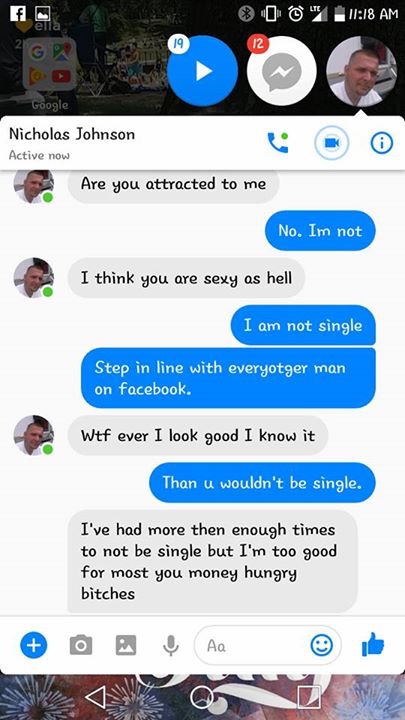 In 2017 he was so desperate to get laid that he began contacting numerous girls that he was friends with on Facebook. One in particular accidentally left her personal cellphone number attached to her FB account when the following conversation ensued: