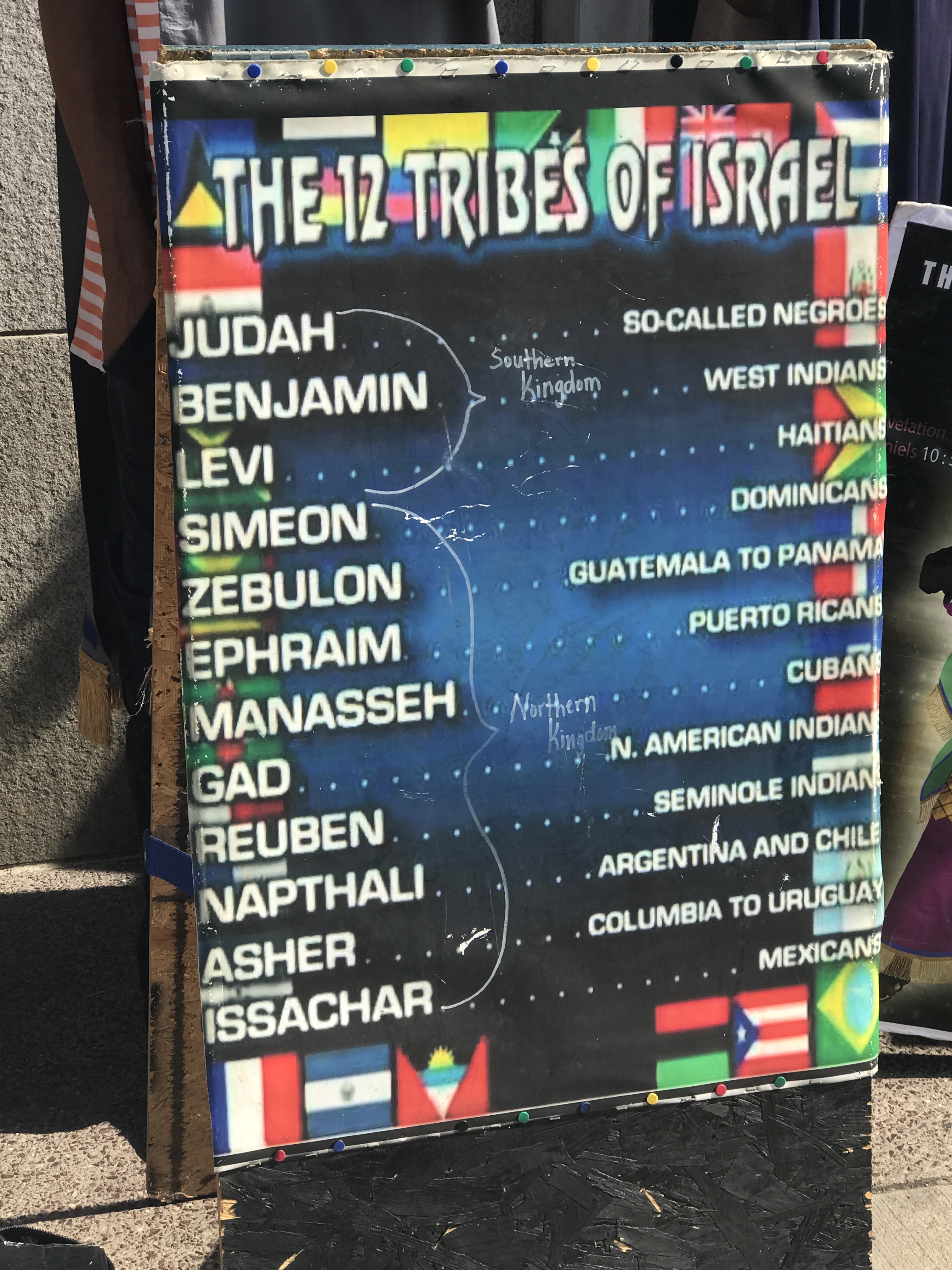 The individuals behind this protest call themselves the IUIC which stands for Israel United In Christ. They believe that blacks and hispanics must learn the truth that they (and only they) are the Biblical 12 tribes of the nation of Israel. Their twitter page reflects that “Negroes, Hispanics and Native Americans, ARE the Children of ISRAEL. We made God angry, and he put us into slavery. It’s time to come back to God.”